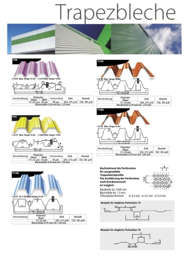 Industrie- und Handelsobjekten eingesetzt. Die Bleche können auch bei Tragwerken mit erheblicher Spannweite, sowie zur Ausführung von Decken verwendet werden. Die Beständigkeit der Trapezprofile wird